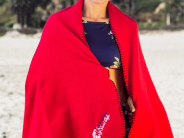 Fill each bag with sand to create a weight to hold down the fleece beach blanket. Bags have a zipper.